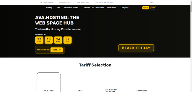 #Black Friday# ava.hosting offers a 25% discount on all anti-complaint server rooms, including VPS/physical servers (with unlimited traffic), with 500G defense included